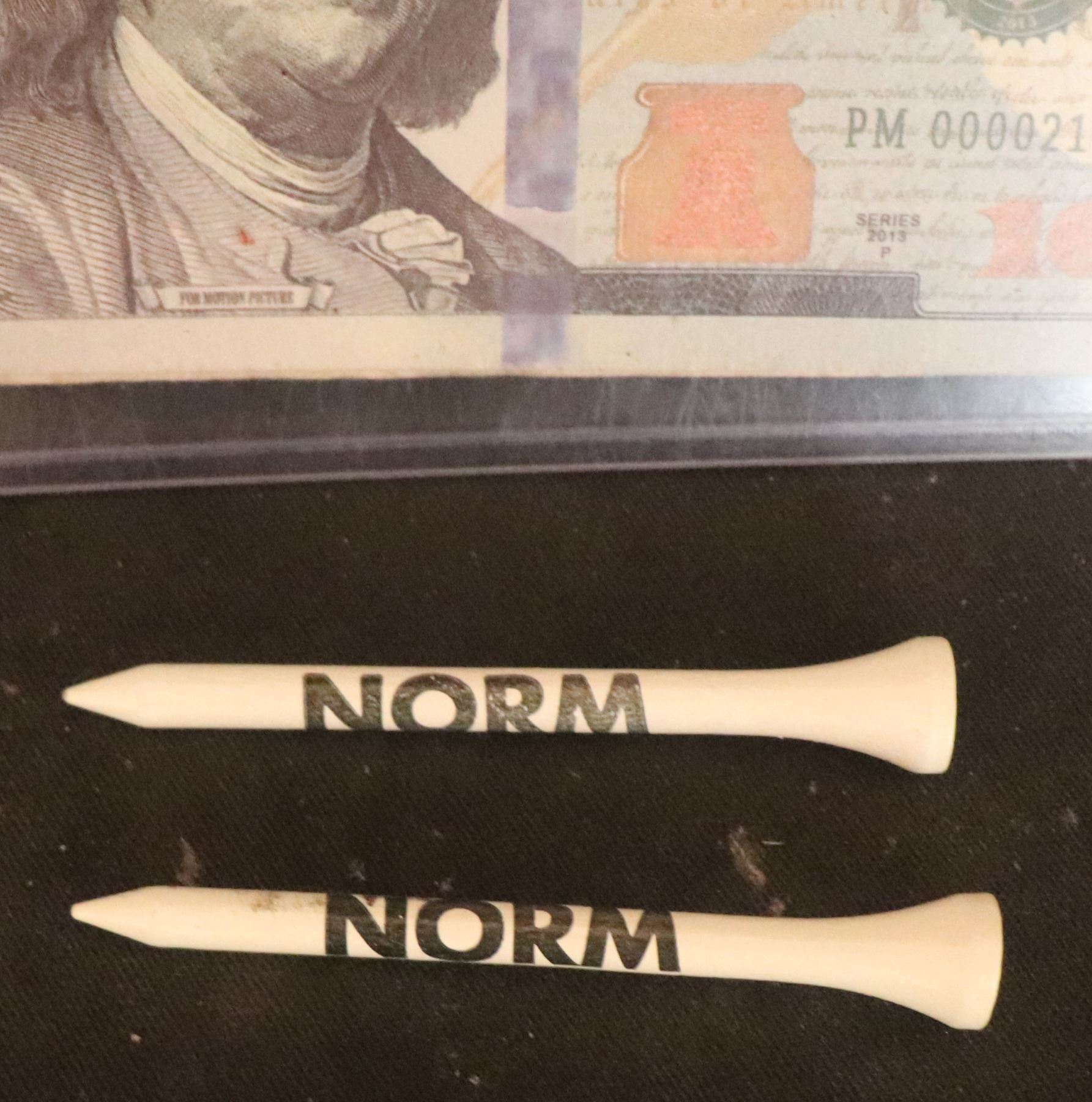 These are two NORM TV SHOW golf tees Norm Macdonald gave to Chris Farley. Unsure if on the golf course or as a novelty.
