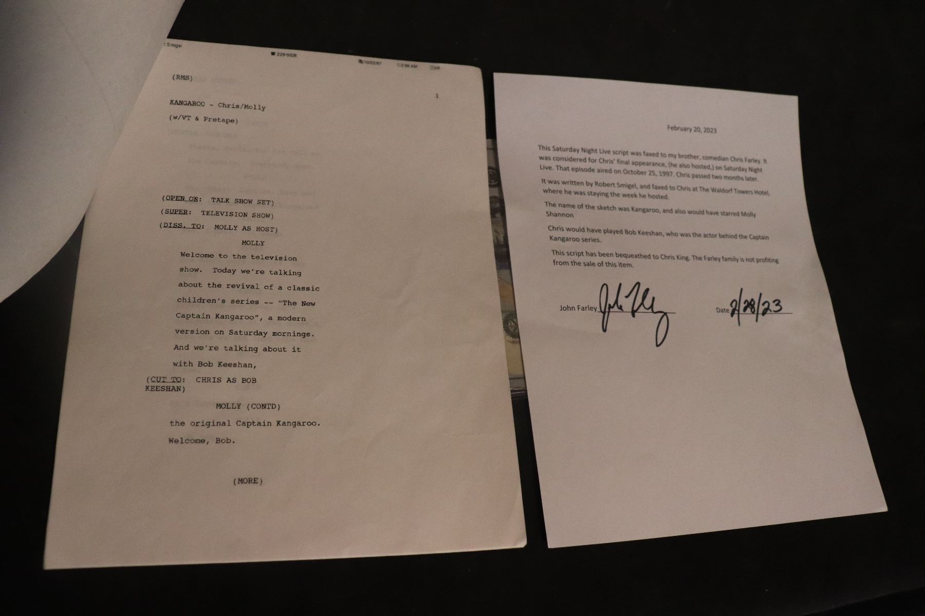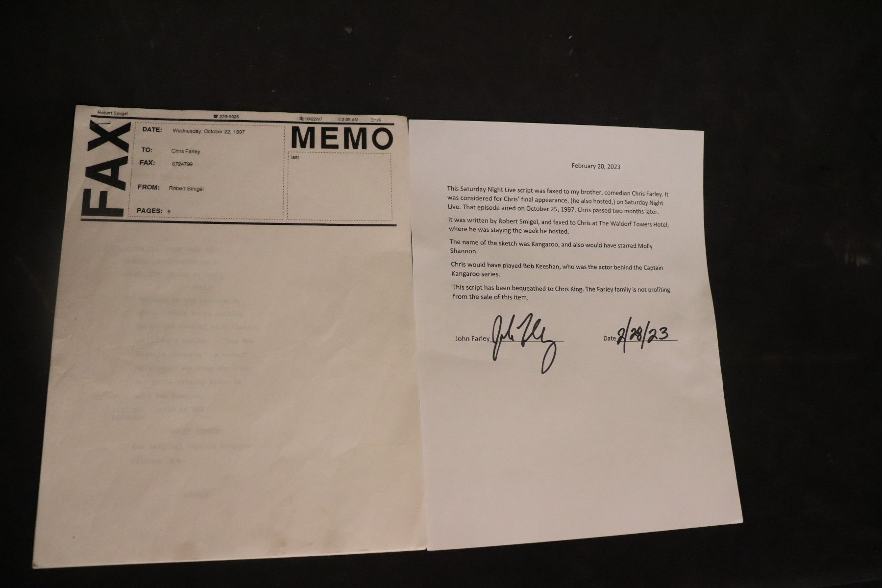CHRIS FARLEY VERY LAST SATURDAY NIGHT LIVE APPEARANCE SCRIPT FAX!