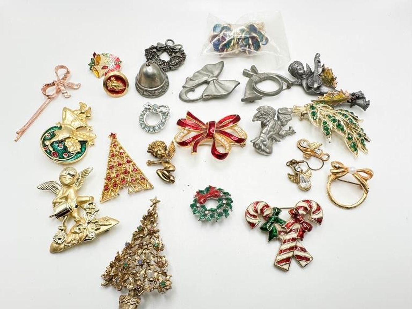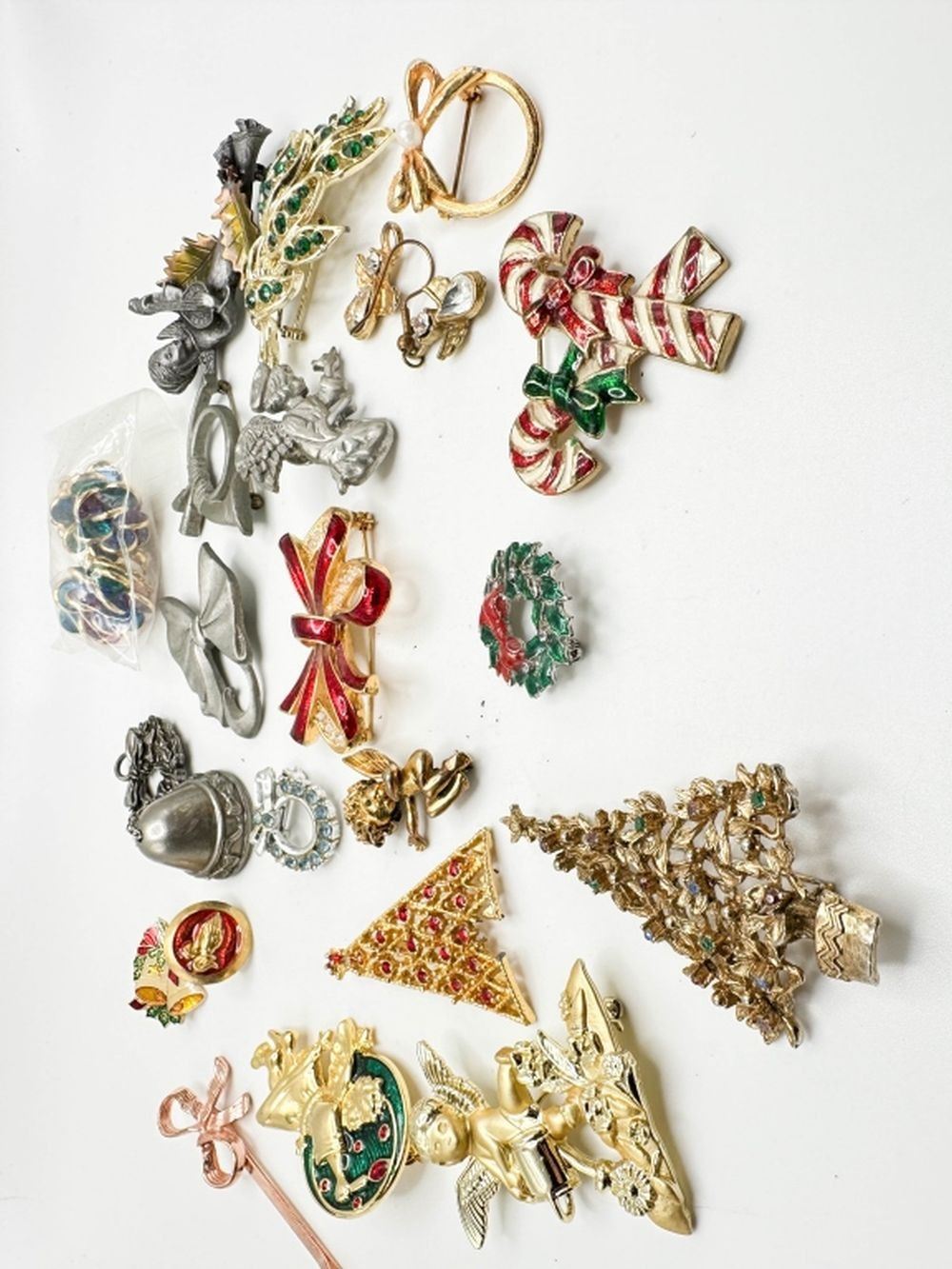 CHRISTMAS ASSORTED BROOCHES, TREE, HOLLY ++++