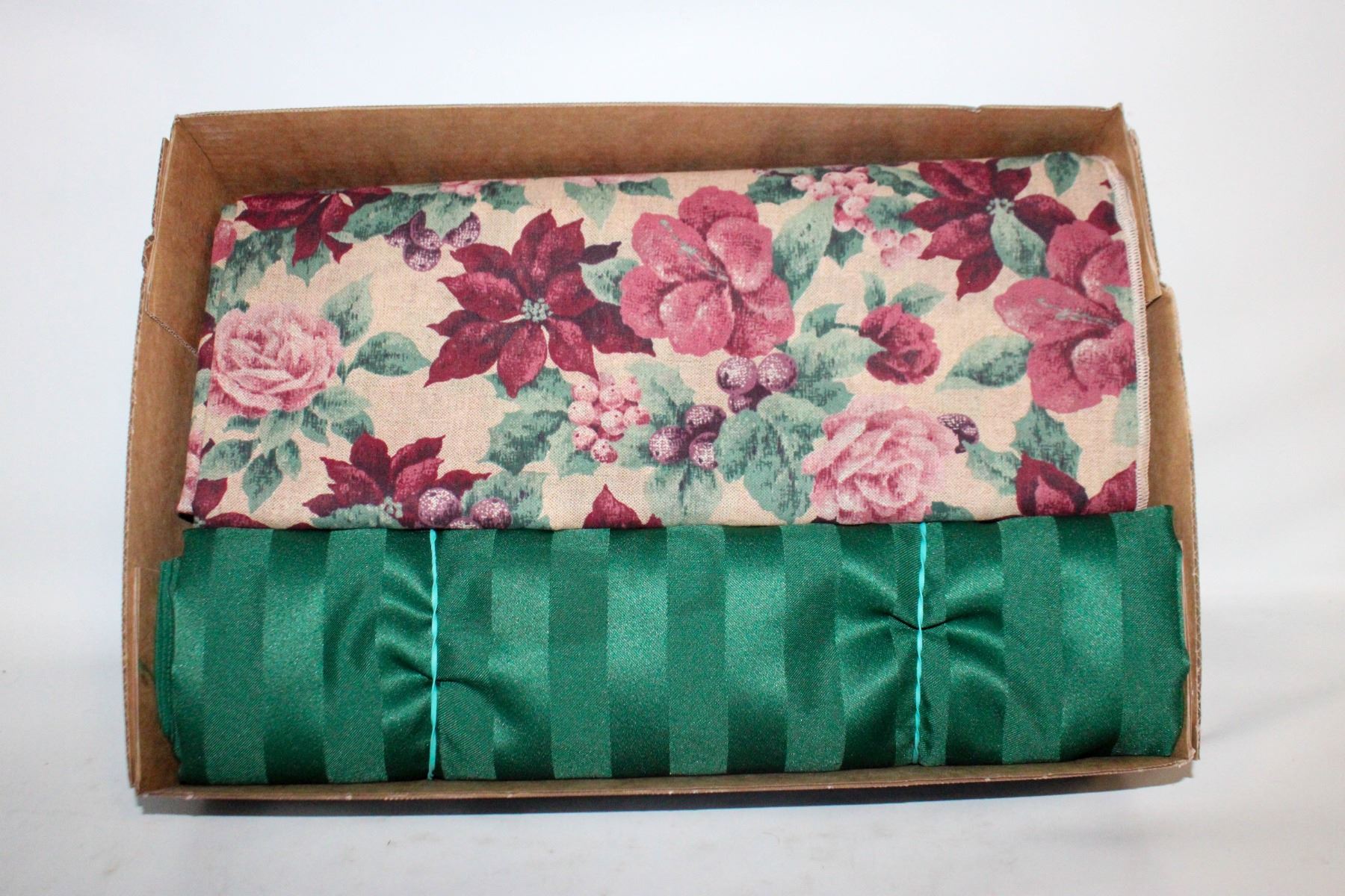 CHRISTMAS BURGUNDY, GREEN & TAN LINENS