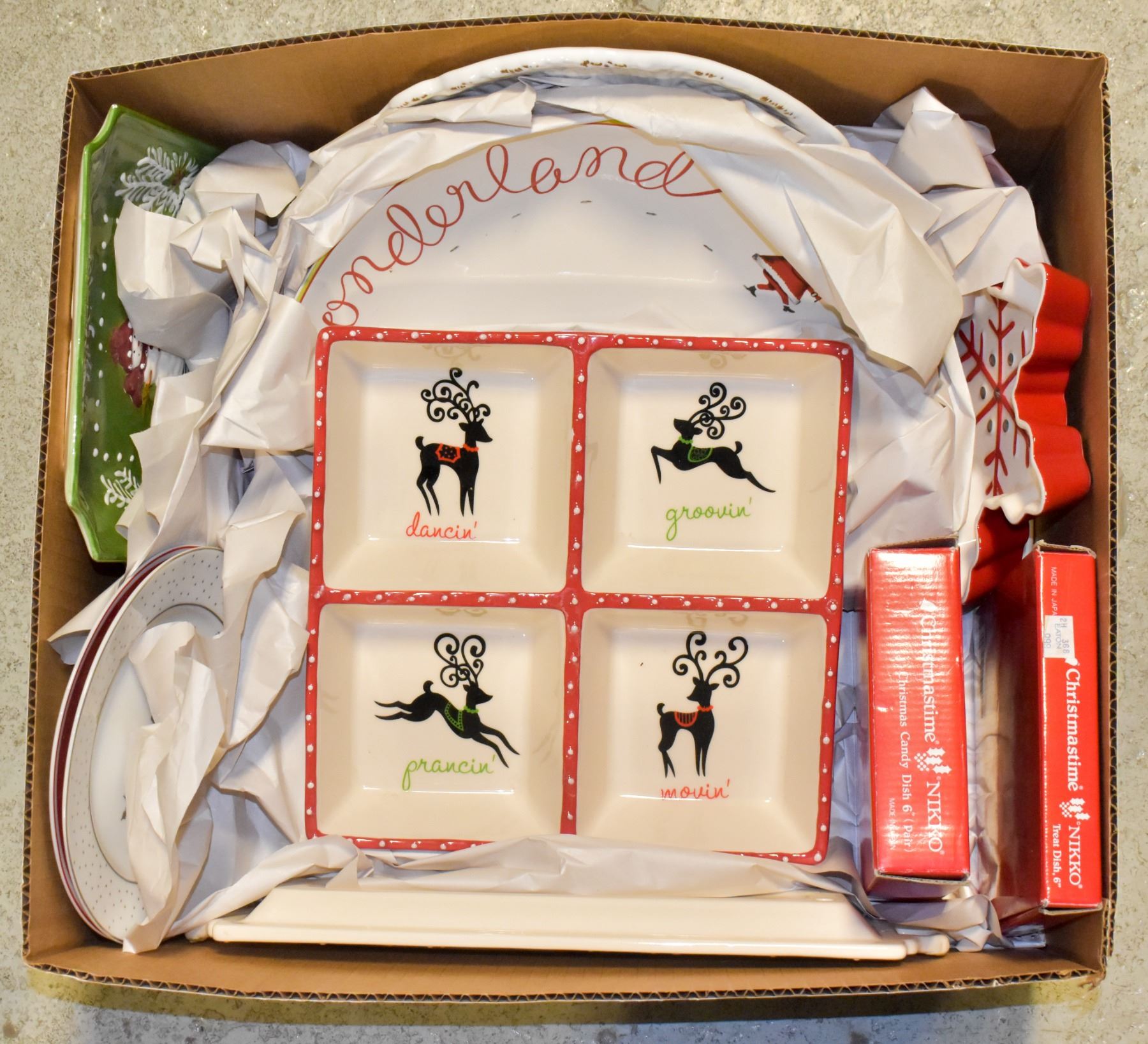 CHRISTMAS CHINA/DISHES- BOX LOT ASSORTED