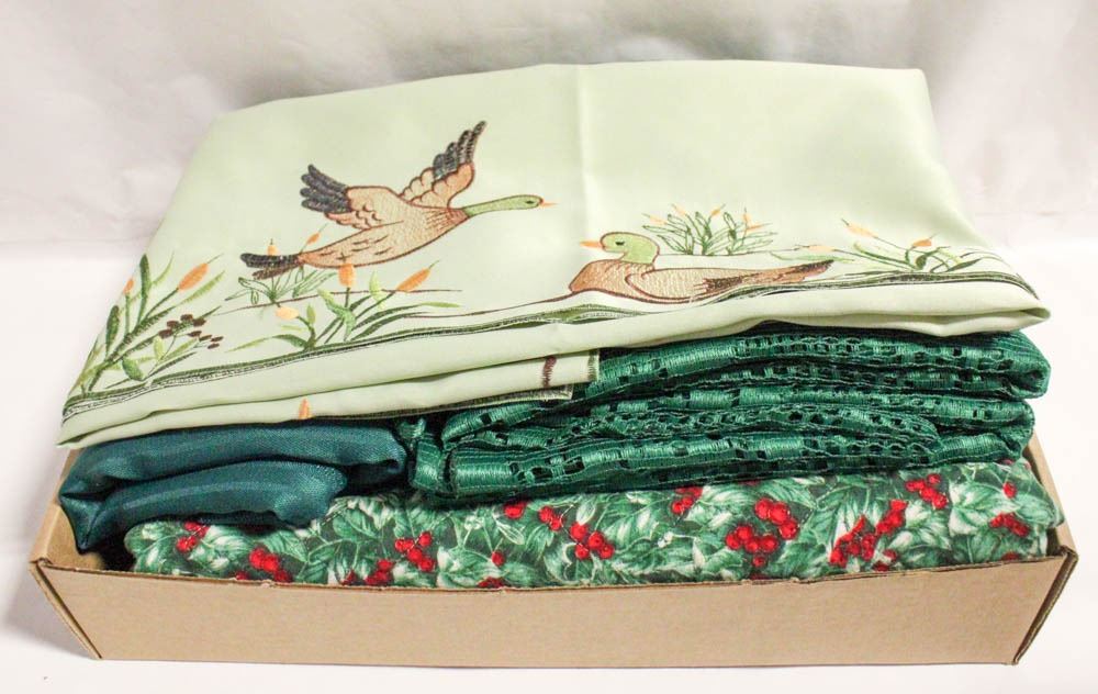 CHRISTMAS LINENS, GREEN RUNNERS, TABLECLOTHS