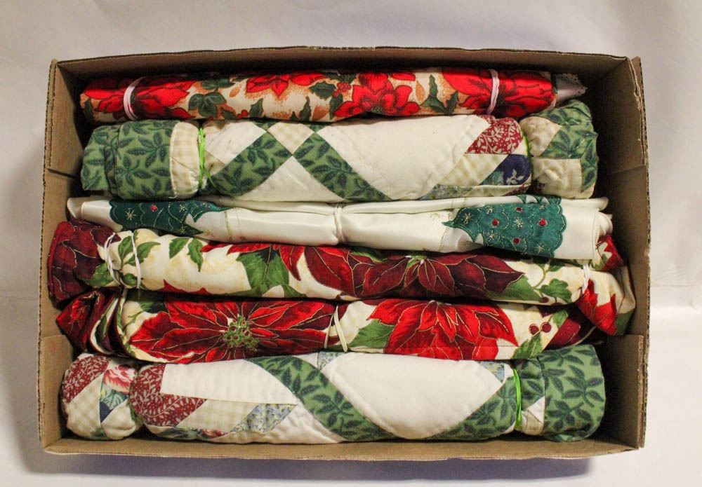 CHRISTMAS LINENS, RED & GREEN RUNNERS, TABLECLOTHS
