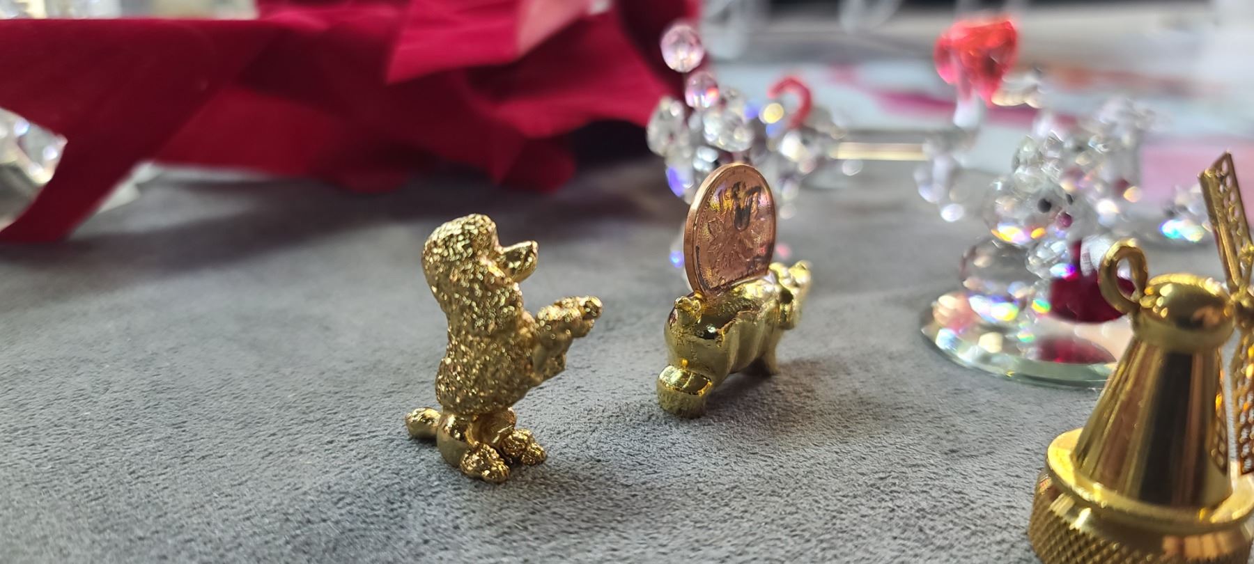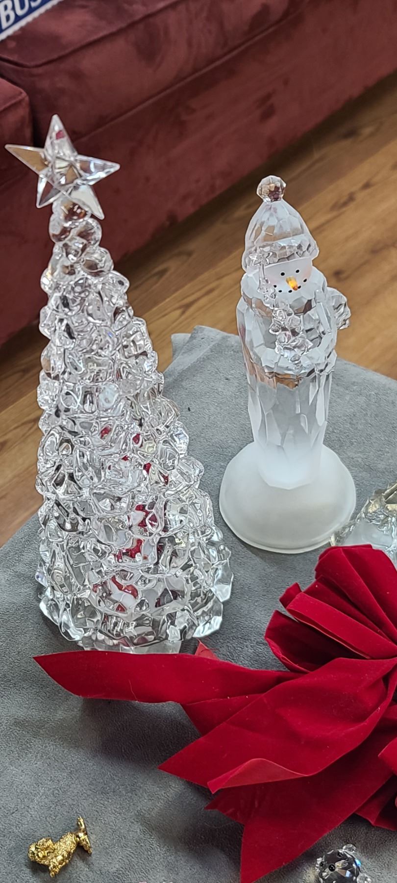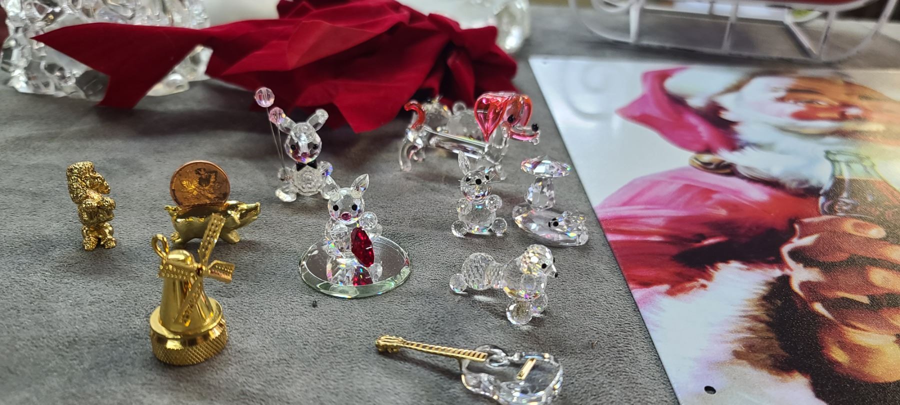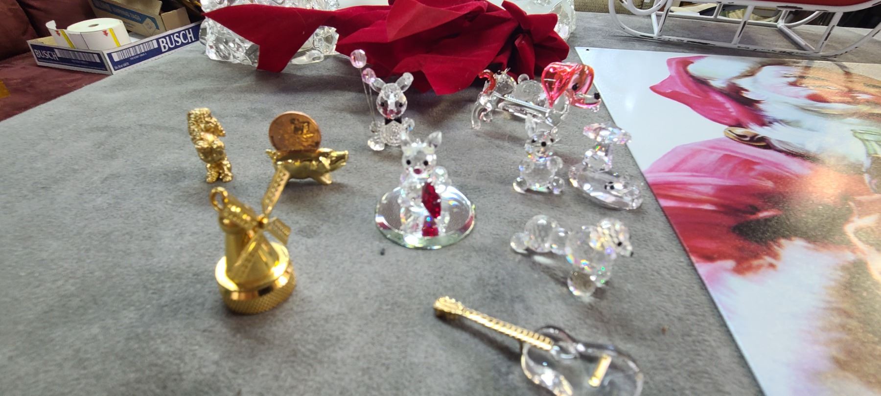 CHRISTMAS ORNAMENTS AND SOME MINI CRYSTAL FIGURINES