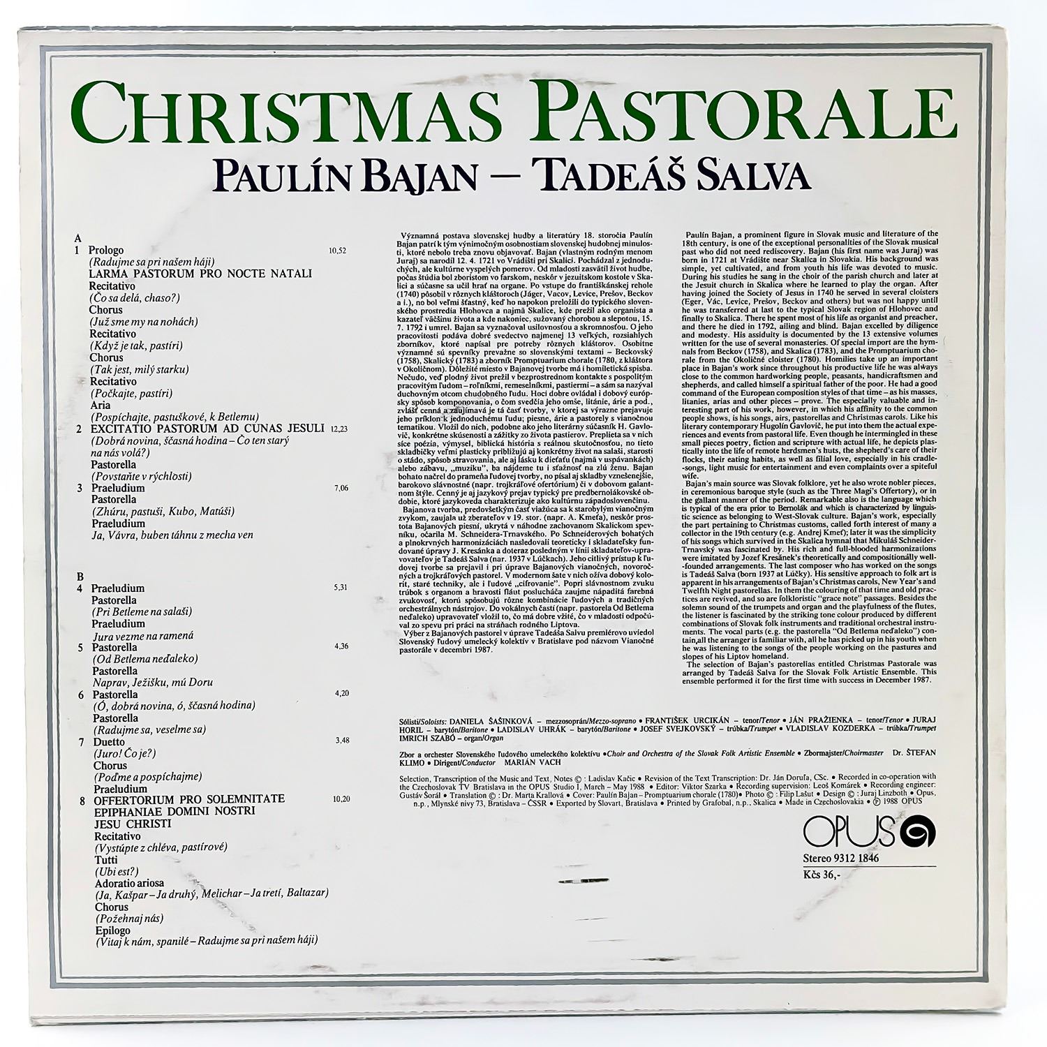 #8752 - CHRISTMAS PASTORALE - PAULIN BAJAN TADEAS SALVA - SLOVAK FOLK ARTISTIC ENSEMBLE - MARIAN VACH - CZECHOSLOVAKIA. VINYL LP RECORD ALBUM - CLASSICAL, FOLK, WORLD & COUNTRY. OPUS RECORDS 9312 1846