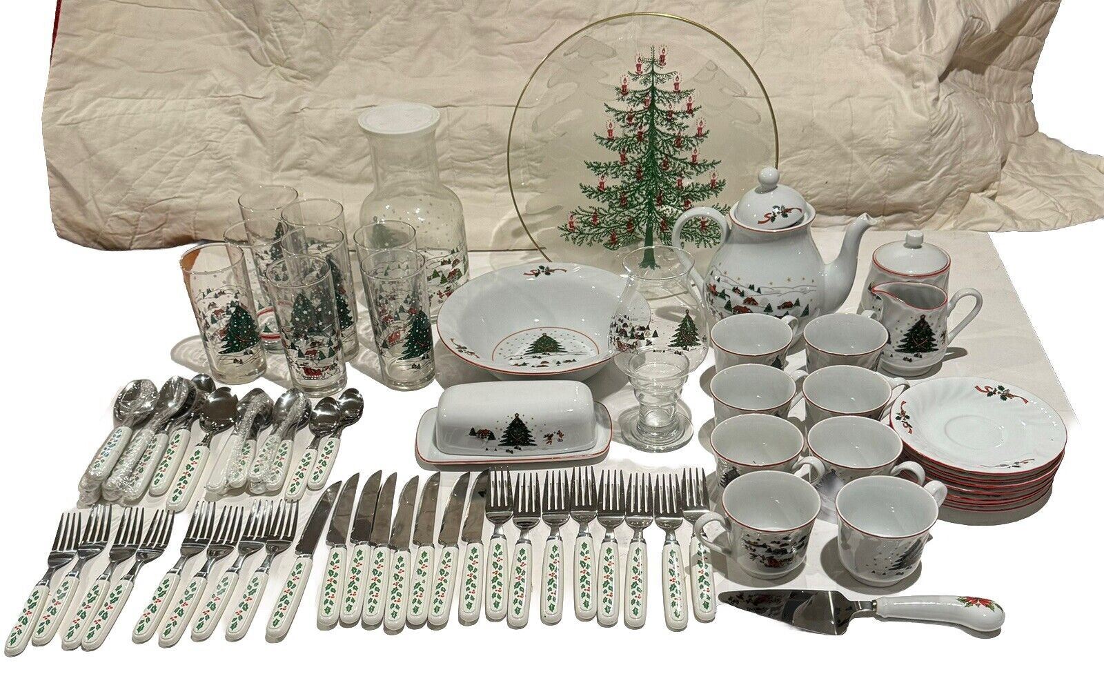CHRISTMAS SERVING SET FOR 8 MISSING 1 SAUCER