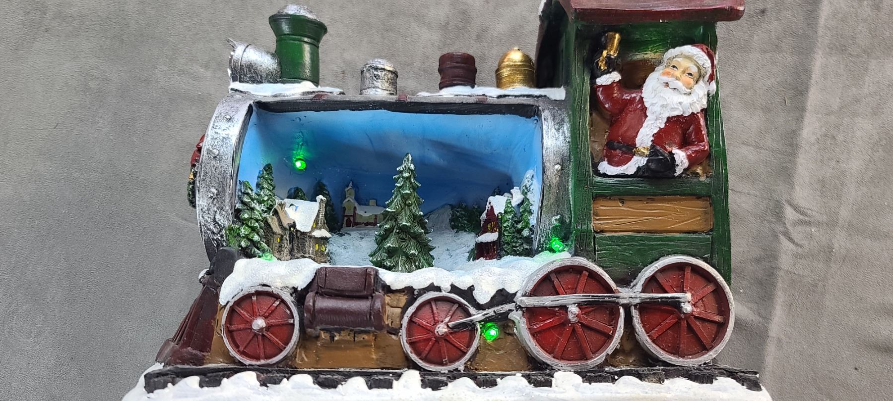 CHRISTMAS TRAIN LIGHTS UP AND PLAYS CARROLS WITH WIND UP