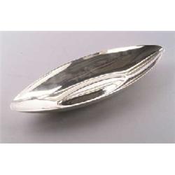 Plated. Spitzovale, längliche Form mit gewölbtem Boden. L.: 36,5 cm. Bez.: Firmenmarke mit Zusatz COLL. GALLIA. 1950er Jahre