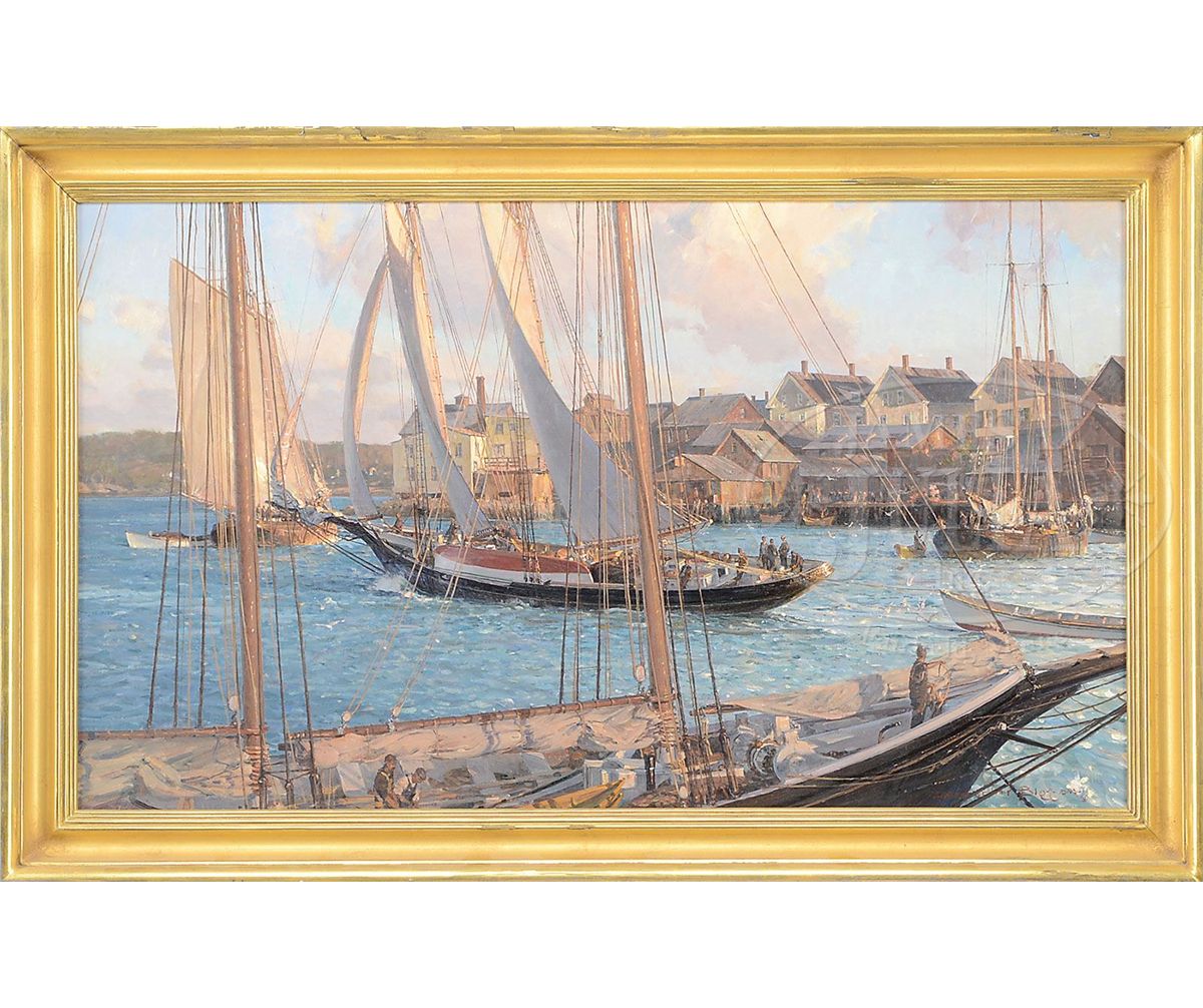 CHRISTOPHER BLOSSOM (American, 1956- ) ARTHUR JAMES DEPARTING FROM GLOUCESTER HARBOR