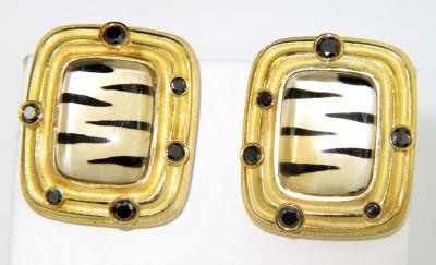 CHRISTOPHER WALLING 14K YELLOW GOLD ENAMEL & BLACK DIAMOND EARRINGSThe total earrings' weight is 29 grams.The total weight of black diamond: 1.08 cts., approximately.The size of enamel: 15 x 11 mm.The measurements of earring is 25 x 21 mm, Thickness: 5 mm.