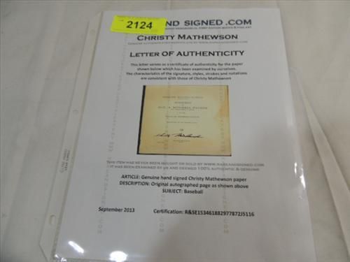 CHRISTY MATHEWSON ON BOOKLET SIGNATURE AUTOGRAPH. NO COA. AS SHOWN. VIEW PICTURE FOR DETAIL.