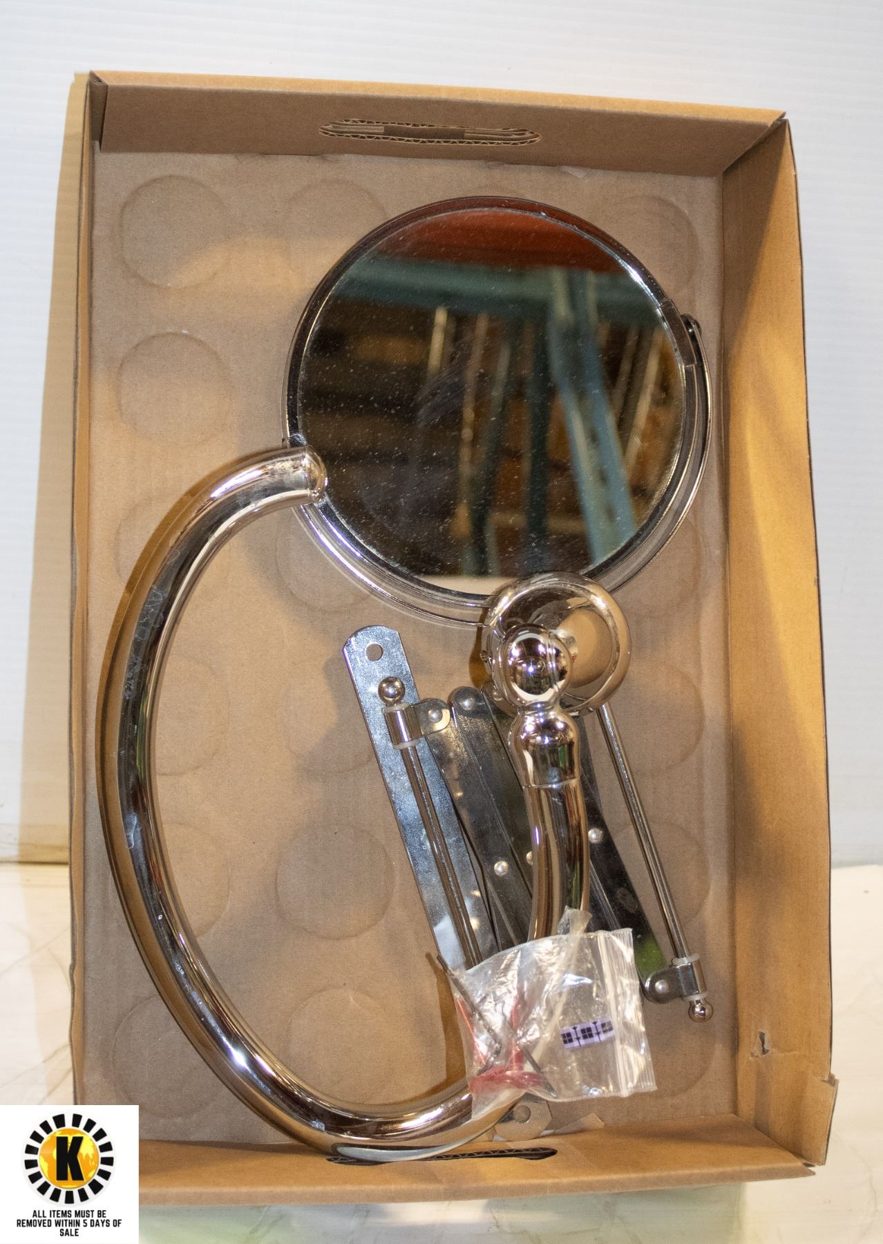 CHROME BATHROOM TOWEL ARM + MIRROR 2PC LOT