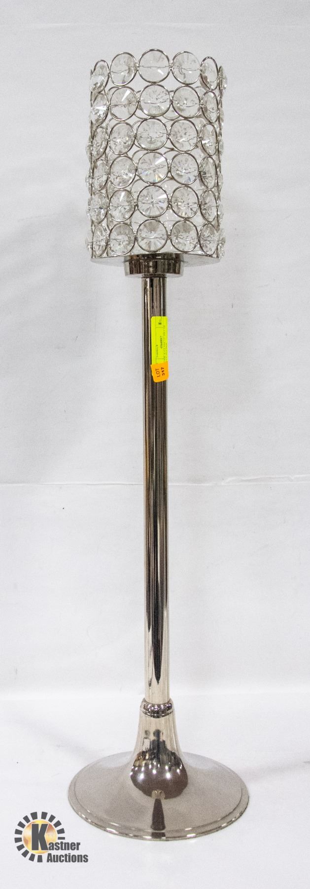 CHROME & GLASS 32" PILLAR CANDLE HOLDER