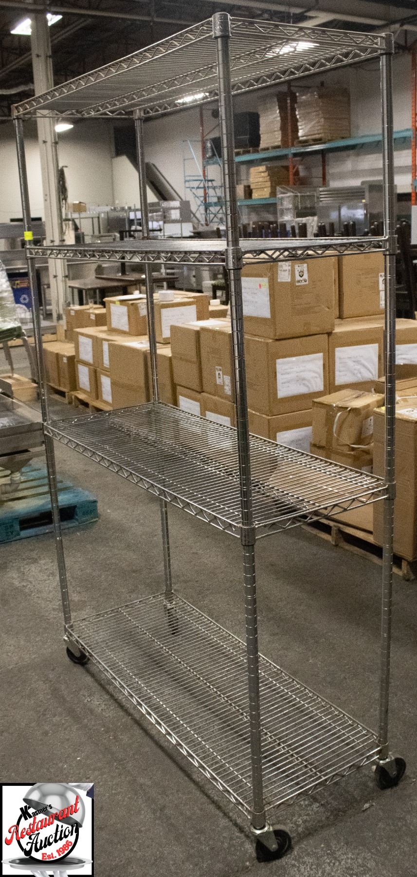 CHROME WIRE RACK W/ CASTORS 47" X 18" X 76.5"