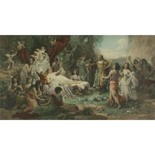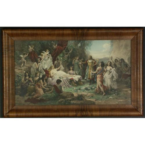 CHROMOLITHOGRAPH 16 1/4'' x 29 1/4'', Unsigned. A Fanciful Mythological Scene. Early 20th century. Placed in a period wood frame, as seen.