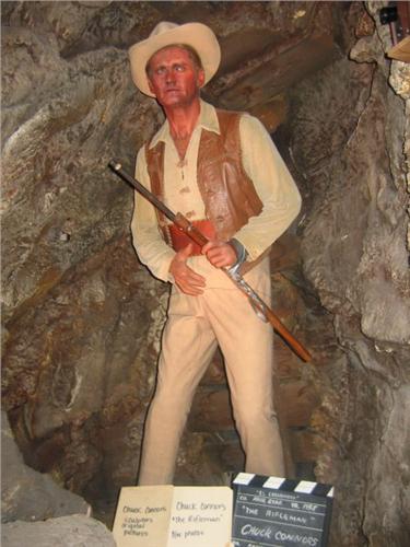 CHUCK CONNORS wax figure from The Rifleman. Includes original sculpting photos taken of Mr. Connors and used by Movieland Wax Museum sculptor, black & white photos and negatives of wax figure