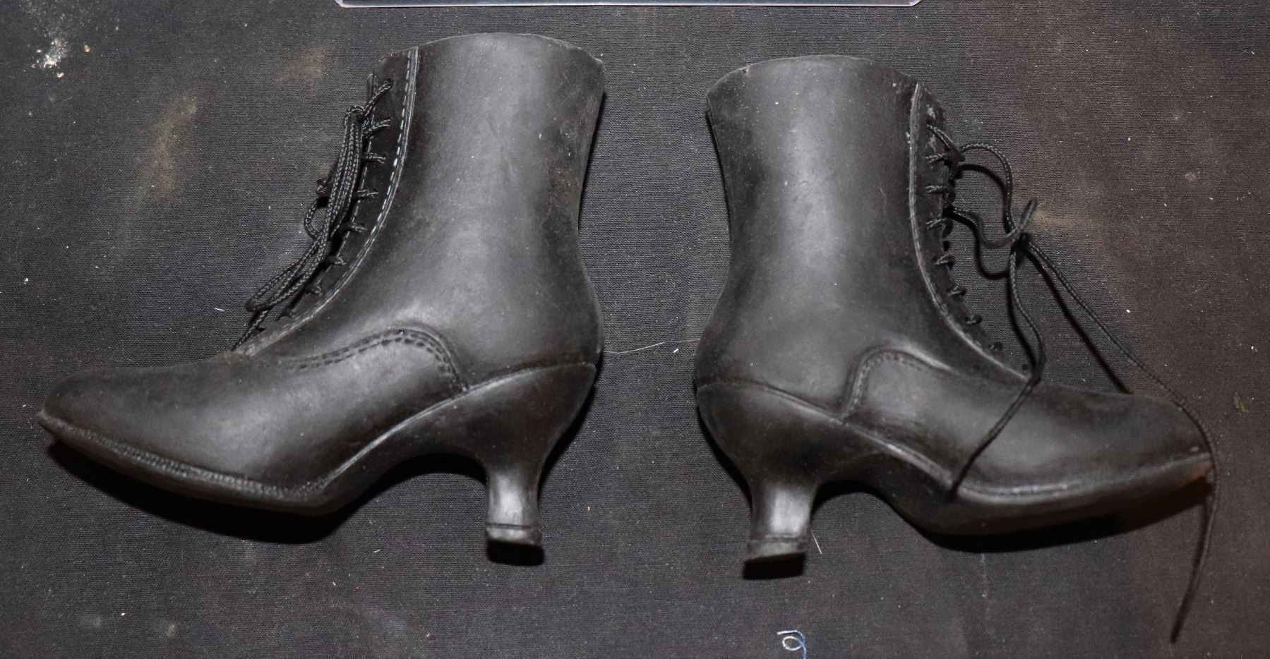 Though I sold 2 sets of miscast back ups years ago, there are only 4 SCREEN USED sets of Tiffany shoes. This matched pair are from the reveal puppet when the tech opens up the back and sees her breathing.