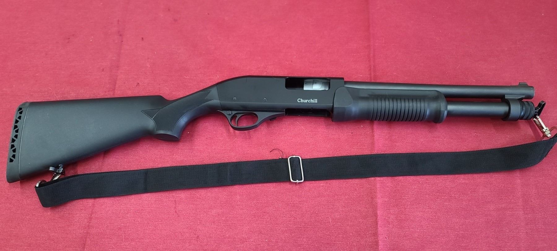 CHURCHILL 12GA 3" PUMP ACTION SHOTGUN 12.5" BARREL - 4 + 1 ROUNDS - SERIAL NUMBER: 17238739 - SYNTHETIC STOCK