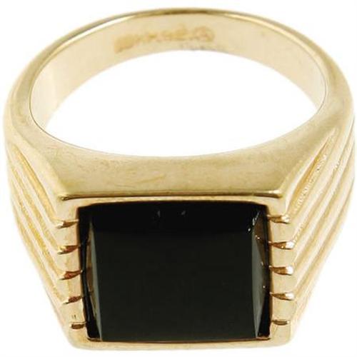 <B>"CHiPS" Erik Estrada Screen-Worn Ring.</B></I> Frank "Ponch" Poncherello was a lady's man, and when the uniform came off during the afterhours, the off-duty jewelry was put on. This heavy gold metal ring with deeply engraved horizontal lines on the sides features a large square black stone at center and is pure Ponch and pure 1970s. Acquired directly from the show's prop master and screen-worn by Erik Estrada. <I>Authenticated by the world's foremost curators of television artifacts, The Comisar Collection of Beverly Hills.</B></I><BR><BR><b>Shipping:</b> Flat Material, Small (<a target="_blank" href="http://www.heritageauctions.com/common/shipping.php">view shipping information</a>)