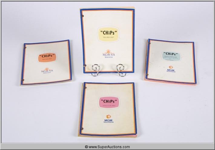 "CHiPs" Scripts / MGM-UA Television ~ "This Year's Riot" / #CHP-2405/ Revised Final Draft / August 5, 1982 ~ "Return To Death's Door" (fka "King Of The Hill") / #CHP-2403 / Revised Final Draft / September 23, 1982 ~ "Head Over Heals" / #CHP-2408 / Revised Final Draft / October 7, 1982 ~ "Battle Of The Bands" / #CHP-3055 / Revised Final Draft / November 20, 1981