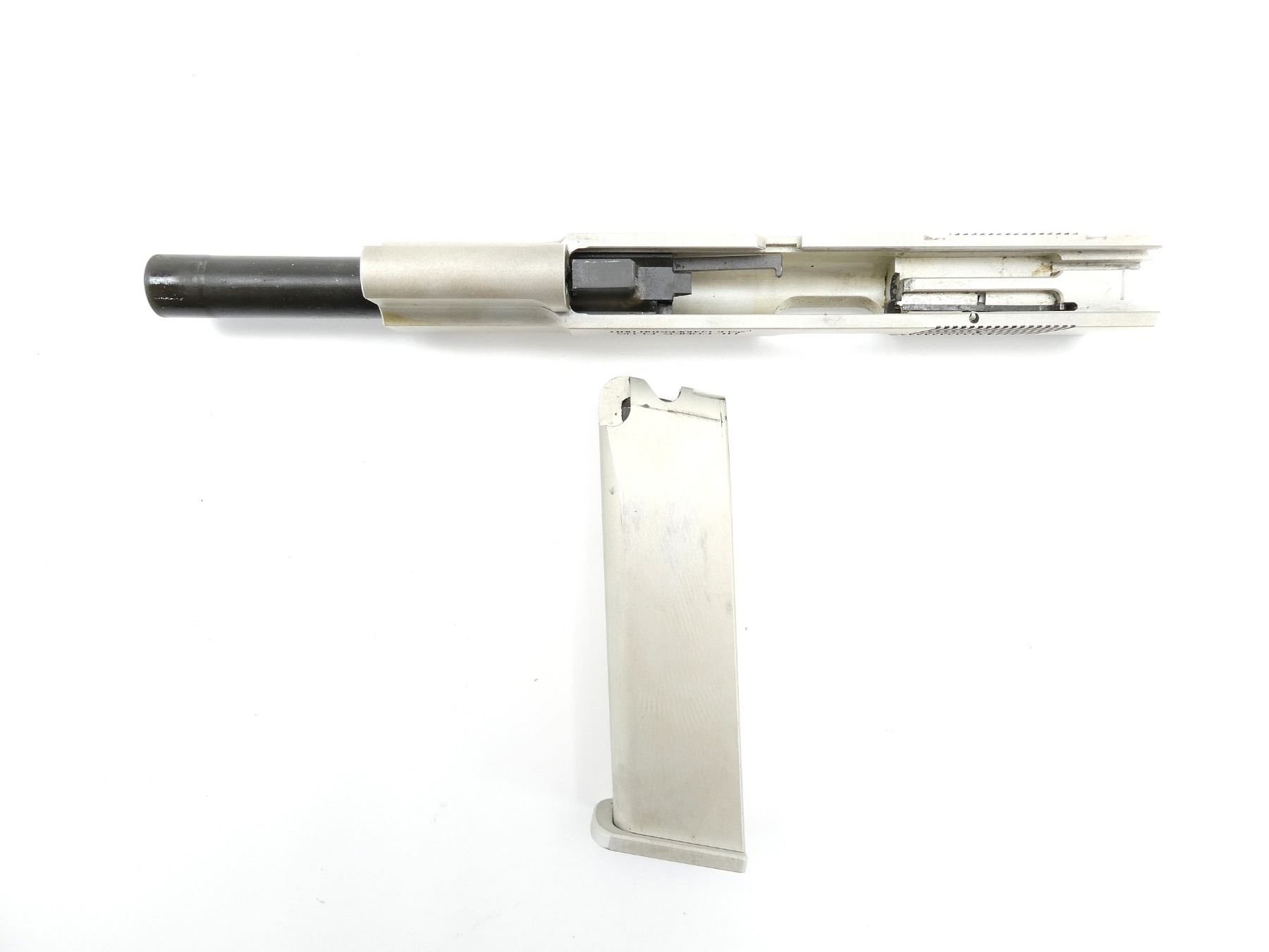 .22 LR CONVERSION KIT IN CASE WITH INSTRUCTIONS, INCLUDES; (1) STEEL SLIDE WITH FRONT & REAR SIGHTS, OAL APPROX. 7.25", (1) BLUED BARREL, OAL APPROX. 4 7/8", (1) SPRING & (1) STEEL MAGAZINE, .22 LR, 10 RNDS, UNMARKED. MAY REQUIRE FITTING. SEE PHOTOS. PAL REQUIRED.