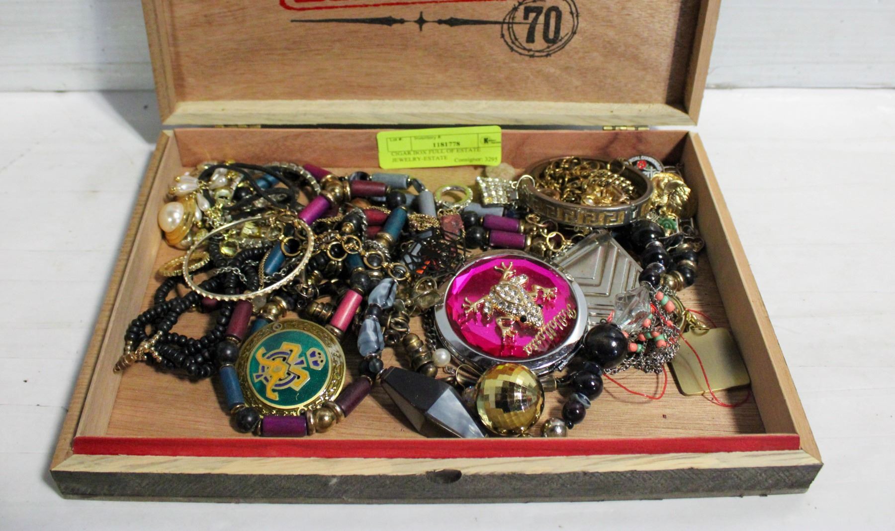 CIGAR BOX FULL OF ESTATE JEWELRY-ESTATE