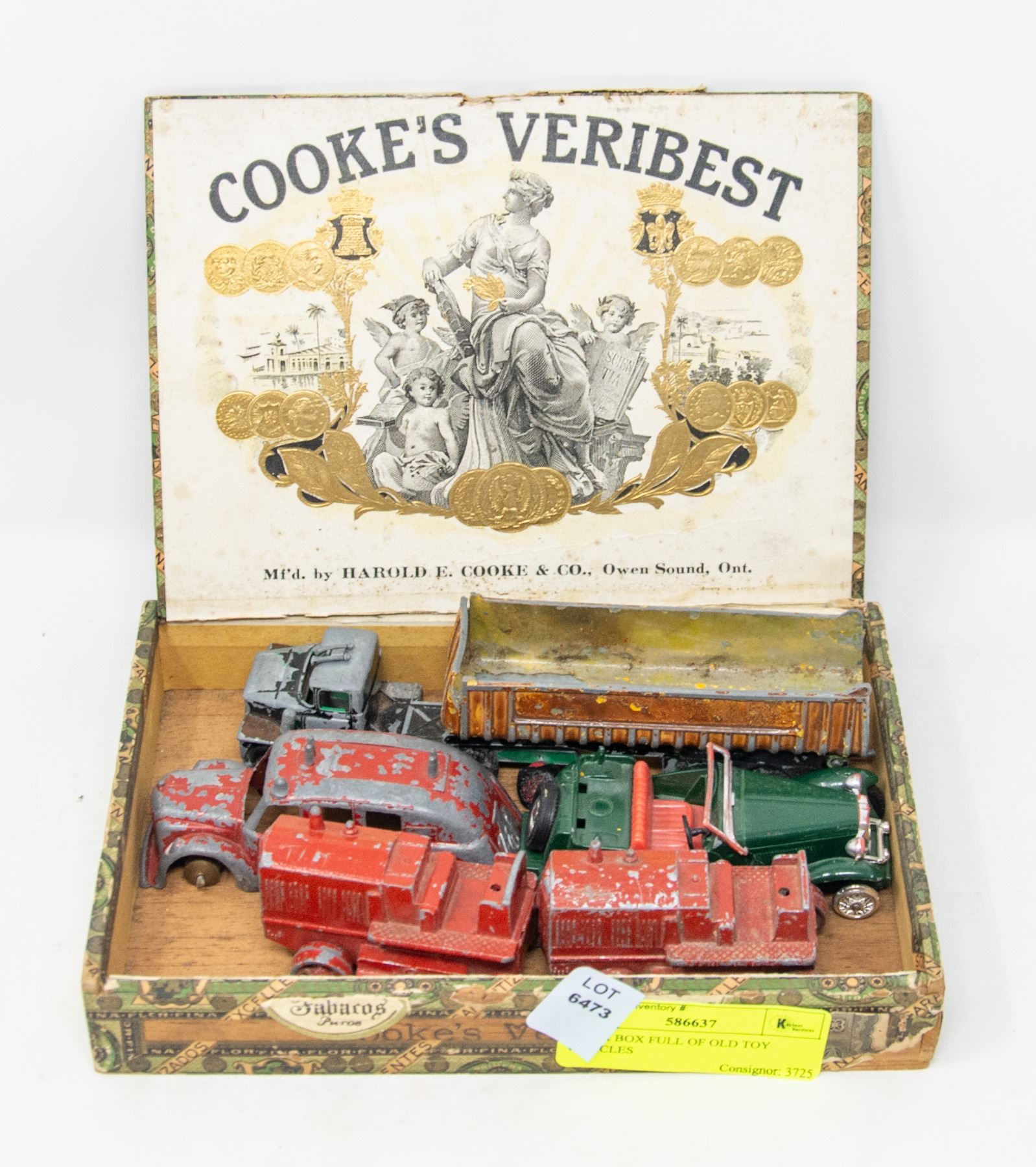 CIGAR BOX FULL OF OLD TOY VEHICLES