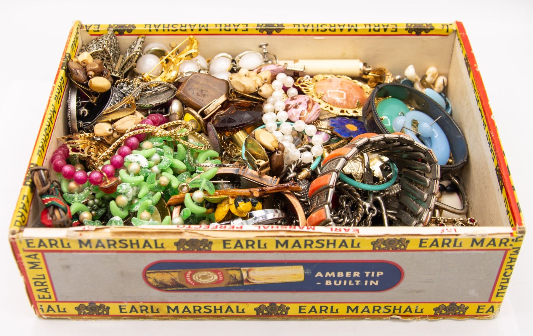 CIGAR BOX FULL OF VINTAGE JEWELRY