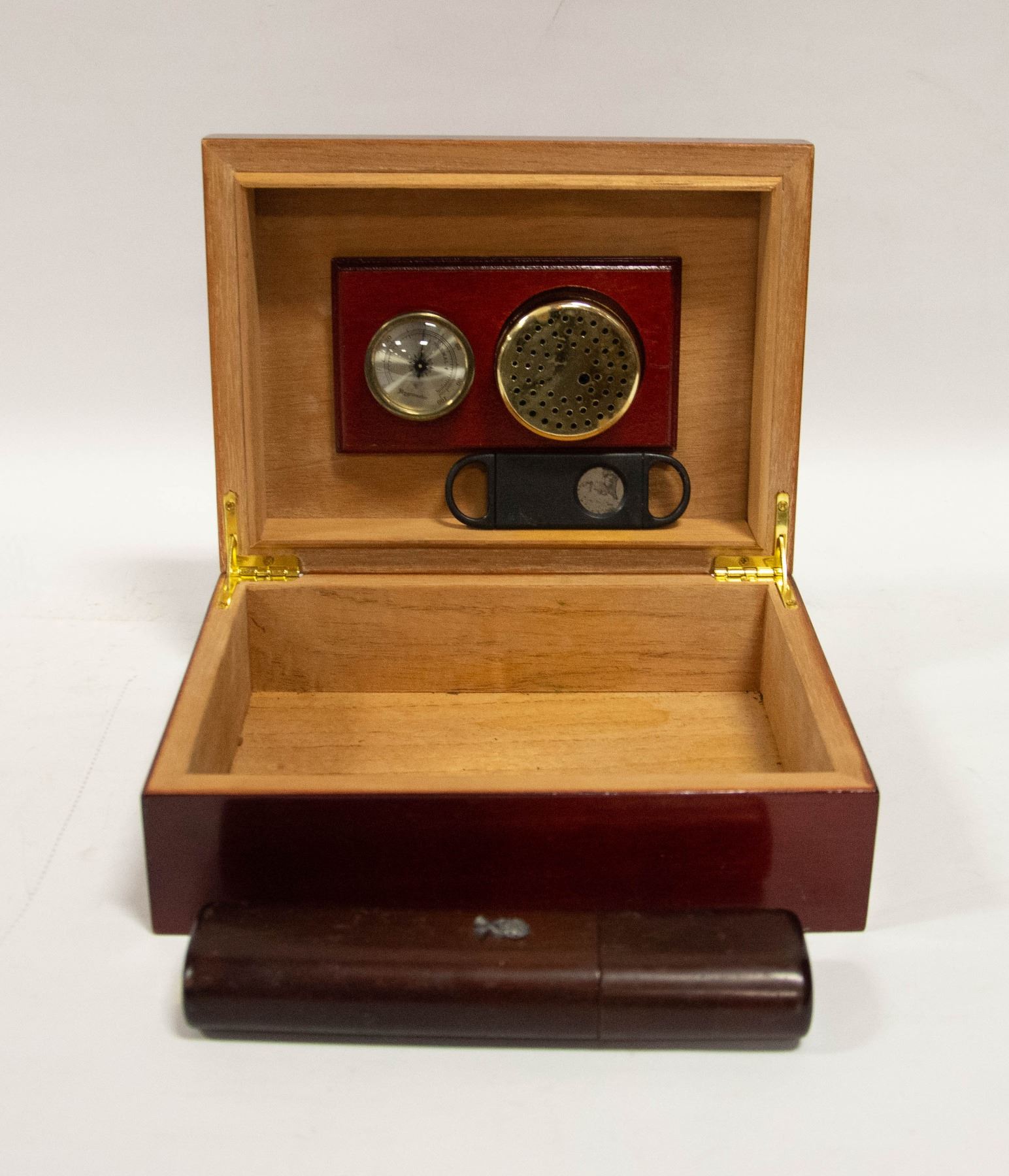CIGAR HUMIDOR, CUTTER + 2 CIGAR CASE