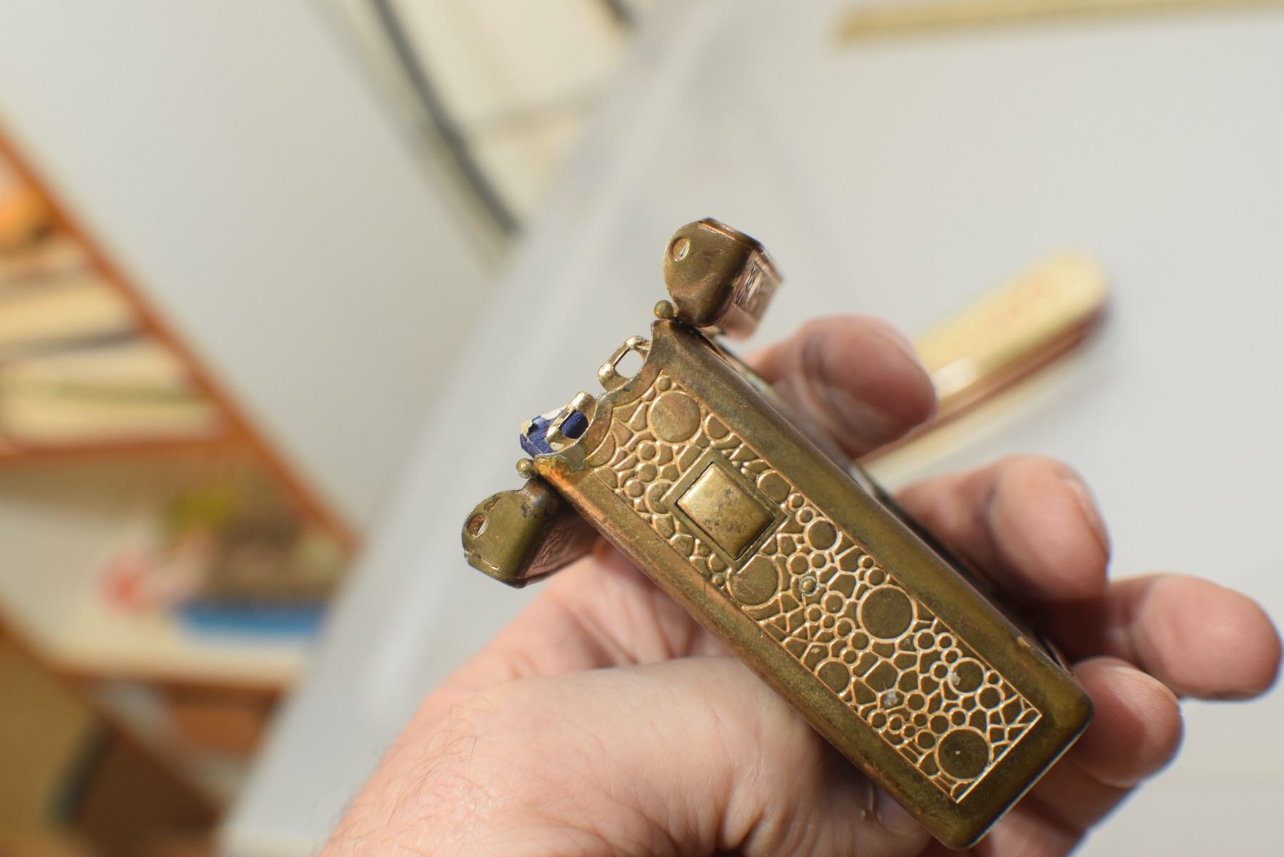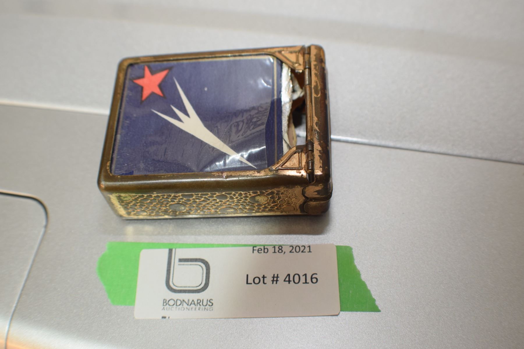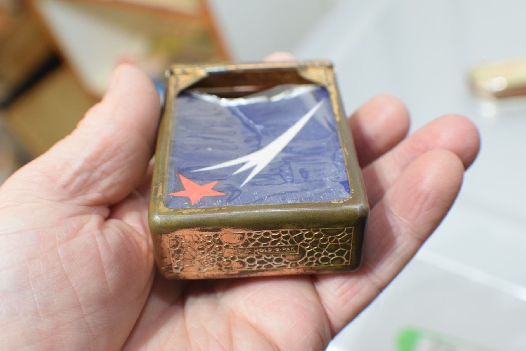 CIGARETTE CASE WITH SPRING LOAD LID AND RUSSIAN CIGARETTE PACK