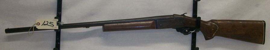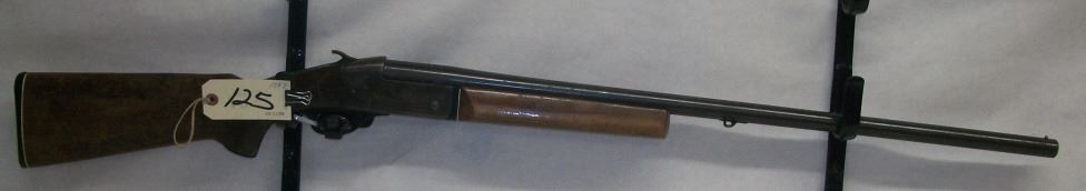 NON-RESTRICTED, SINGLE SHOT, 12GA X 2 3/4", 30" BARREL WITH FIXED FULL CHOKE, SN 469822. WOOD CRACKED THROUGH WRIST, BLUING IS BROWN, BORE VERY GOOD.