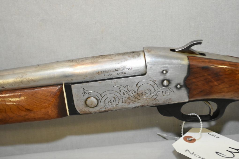 CIL Model 402 .12 Ga 2 3/4" Single Barrel Break Action Shotgun w/ 30" bbl [ polish finish with some surface rust, chip missing right side upper tang, good forewood, missing sling swivels ] Ser # 543041