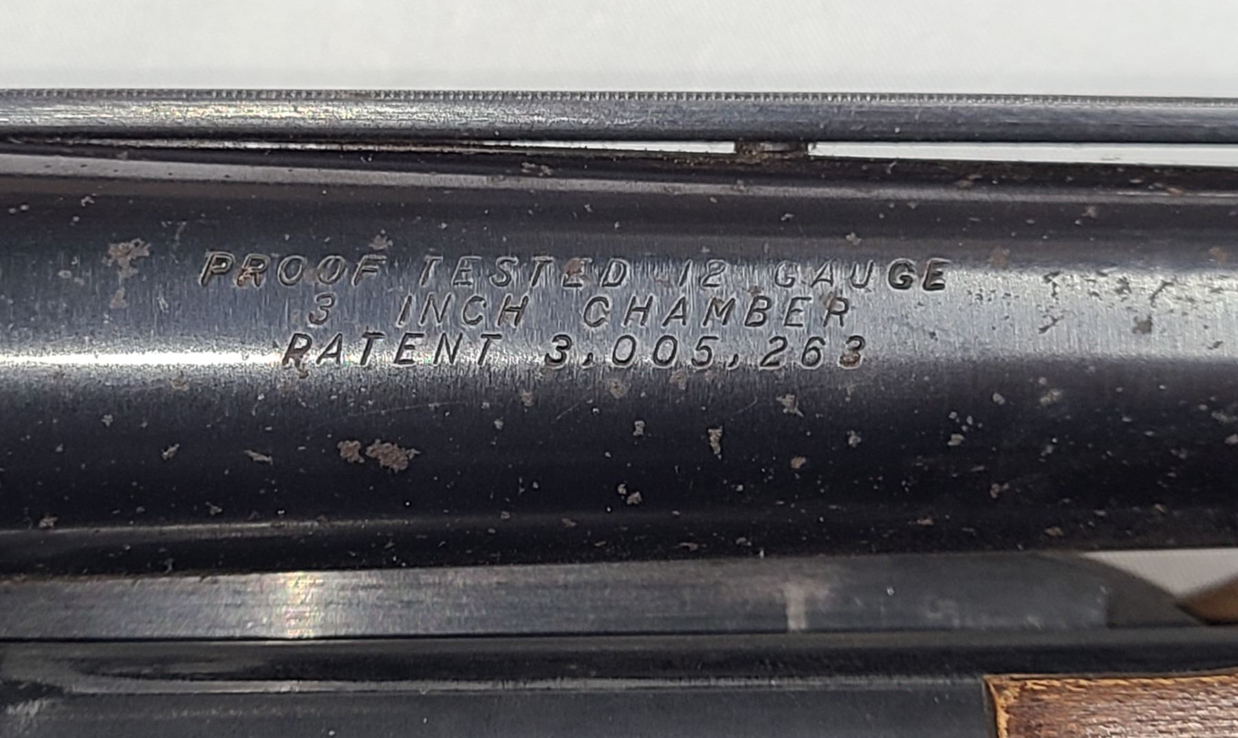 Blued fixed improved modified ribbed barrel. Double bead sight.