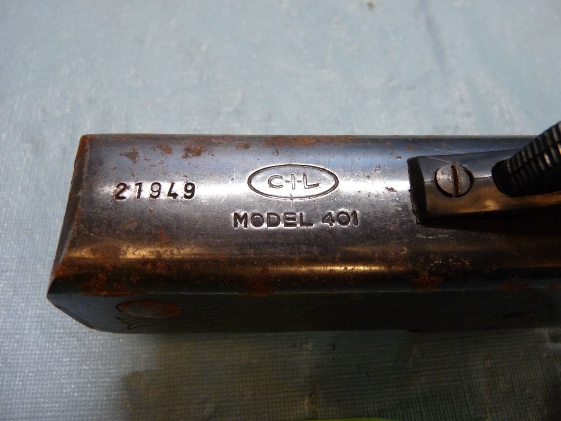 CIL model 401 shotgun receiver appears to be 12 gauge plastic trigger guard action works as it should