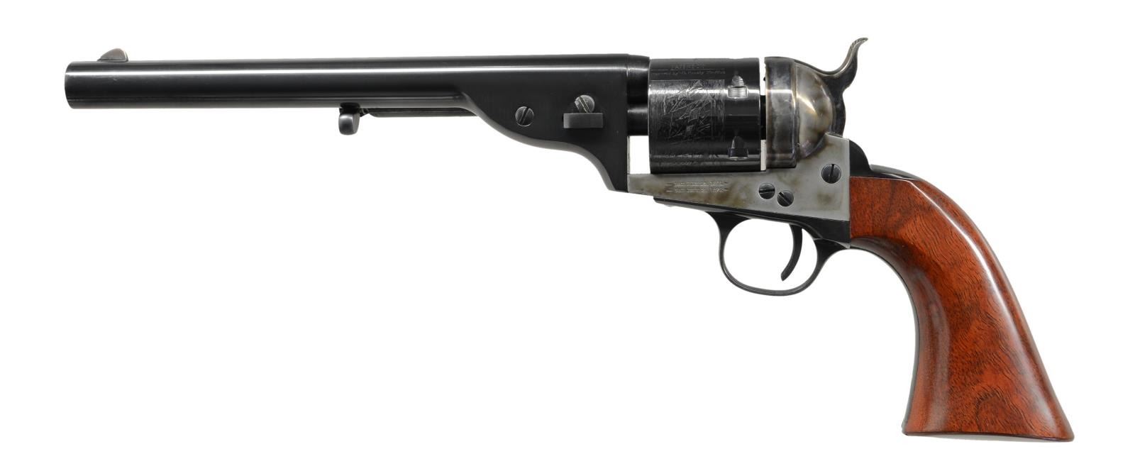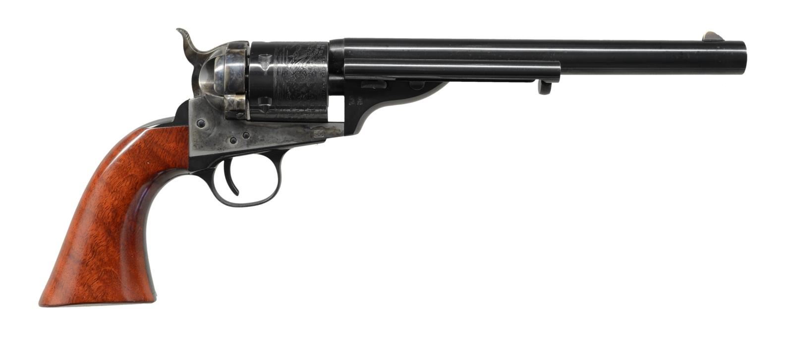 Cal. 38 Colt & S&W SPL. S#. X16395. Bbl. 8" Rd. Blued Bbl., straps, trigger & Cyl. Case hardened action and hammer. Smooth 1 piece walnut grips. CONDITION: Overall near excellent with only a little action wear and minor handling marks. Very good bore. MODERN (23-1889/ZAL) $300-500