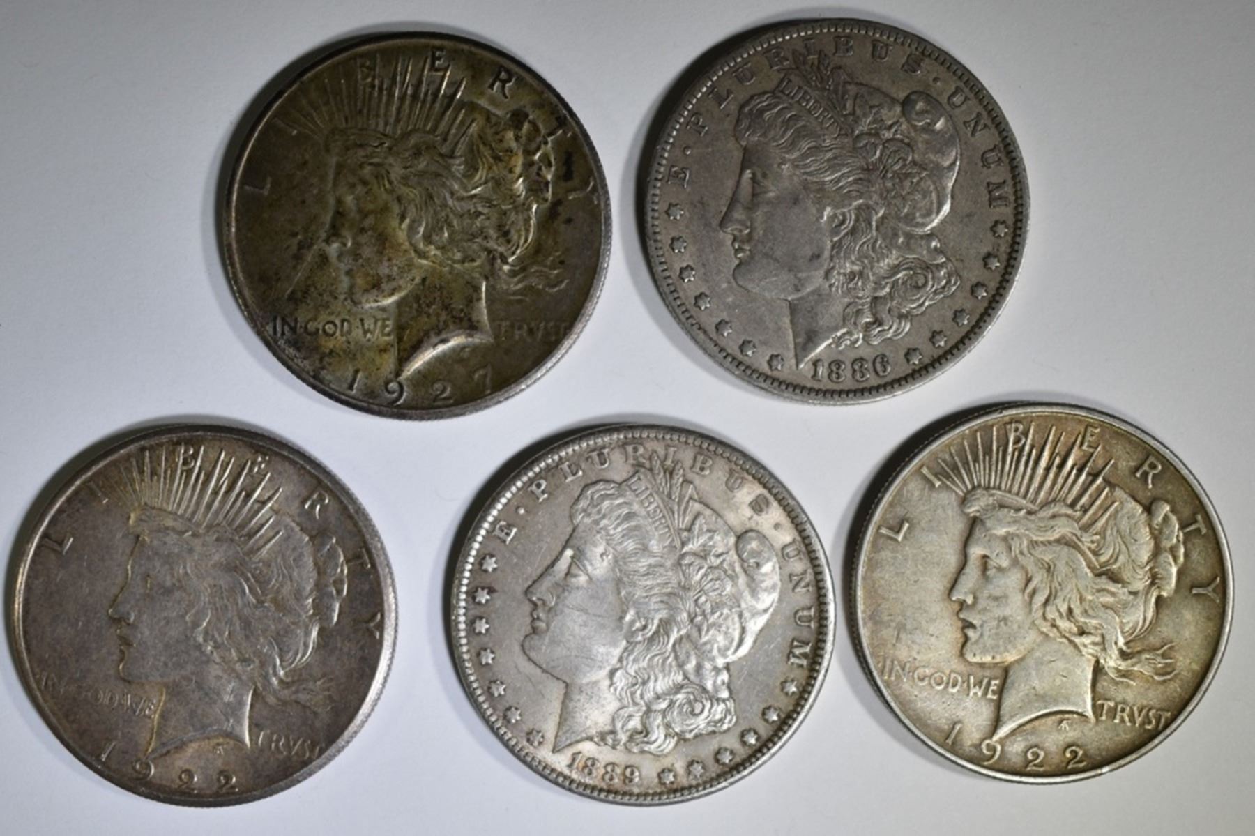 1886-O, 1889 MORGAN & 1922, 1922-S & 1927  PEACE ESTIMATE $120 - $140.