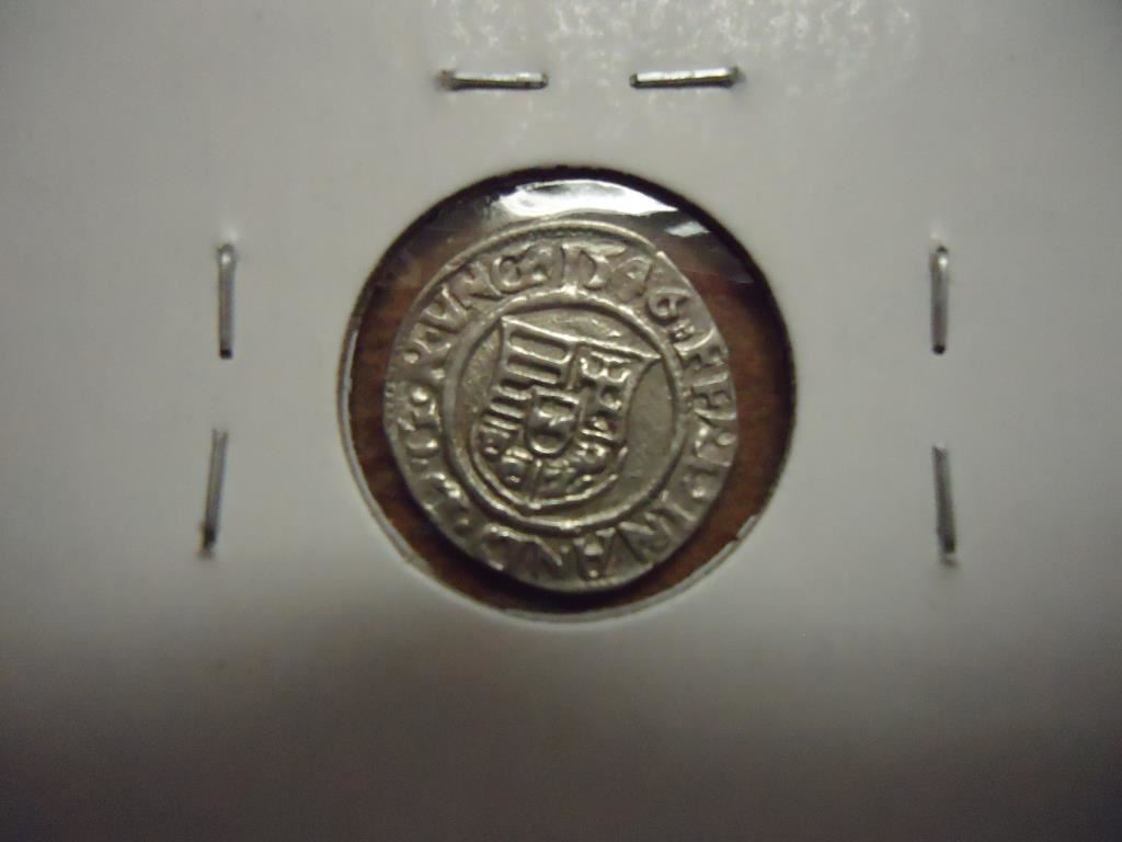 HOLY ROMAN EMPIRE AR DENAR DEPICTING THE HUNGARIAN COAT OF ARMS WITH MADONNA AND CHILD VERSO.