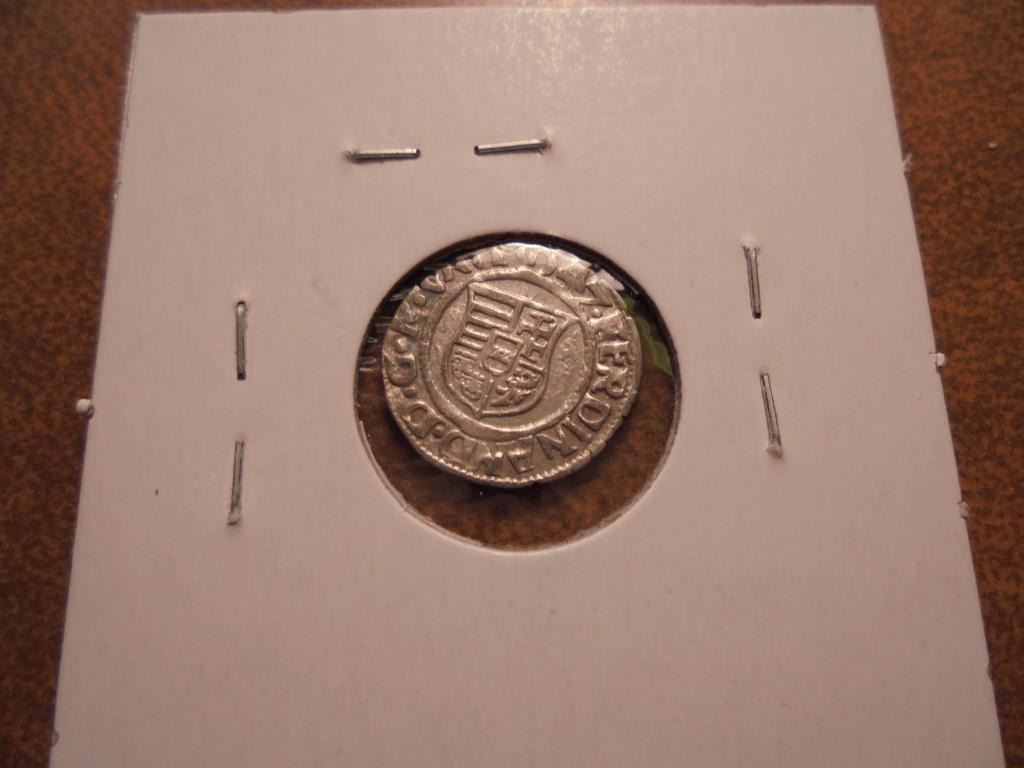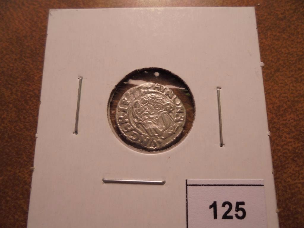HOLY ROMAN EMPIRE AR DENAR DEPICTING THE HUNGARIAN COAT OF ARMS WITH MADONNA AND CHILD VERSO.
