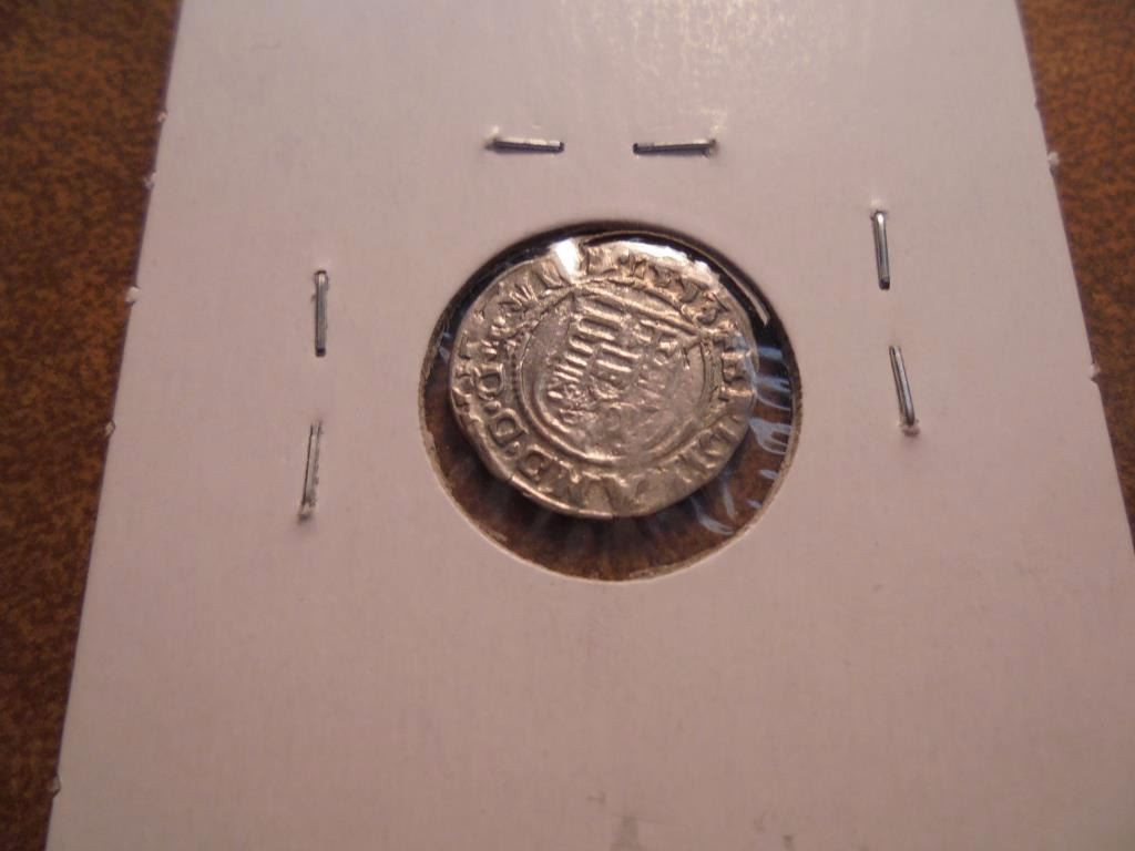 HOLY ROMAN EMPIRE AR DENAR DEPICTING THE HUNGARIAN COAT OF ARMS WITH MADONNA AND CHILD VERSO.