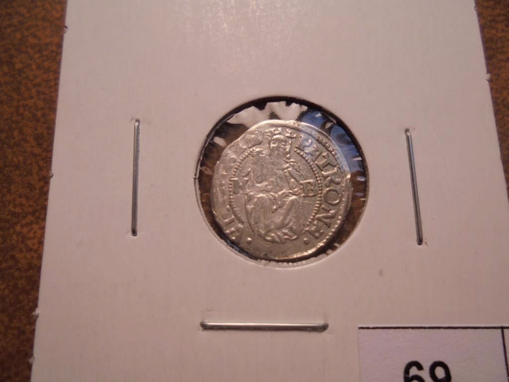HOLY ROMAN EMPIRE AR DENAR DEPICTING THE HUNGARIAN COAT OF ARMS WITH MADONNA AND CHILD VERSO.
