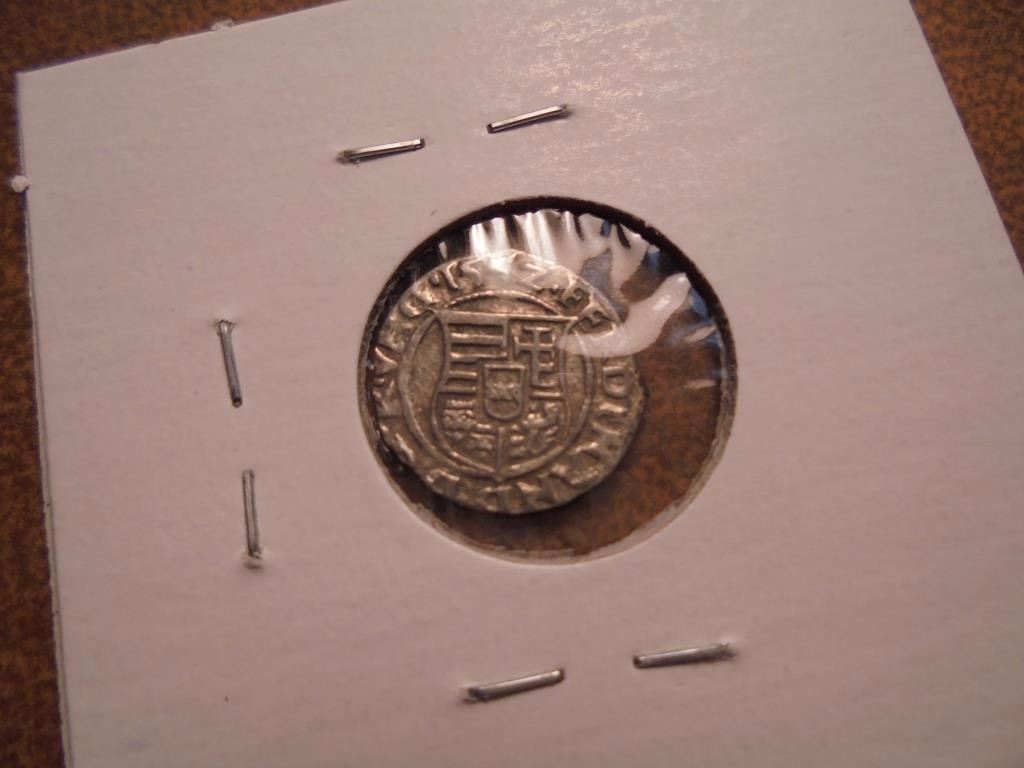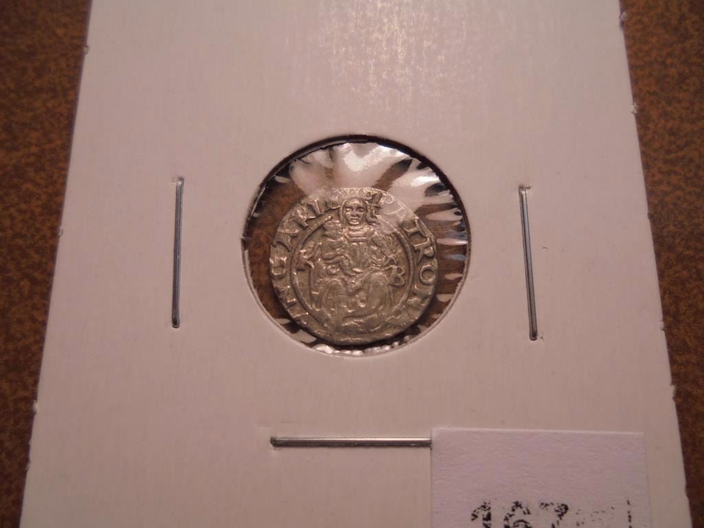 HOLY ROMAN EMPIRE AR DENAR DEPICTING THE HUNGARIAN COAT OF ARMS WITH MADONNA AND CHILD VERSO.