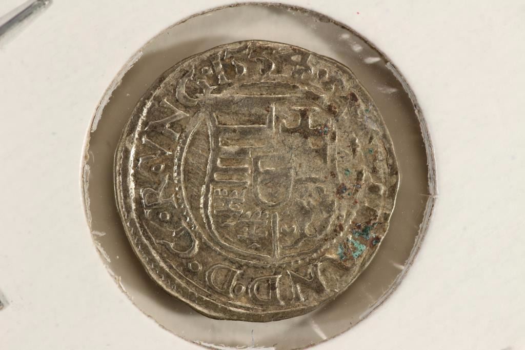 HOLY ROMAN EMPIRE AR DENAR DEPICTING THE HUNGARIAN COAT OF ARMS WITH MADONNA AND CHILD VERSO.