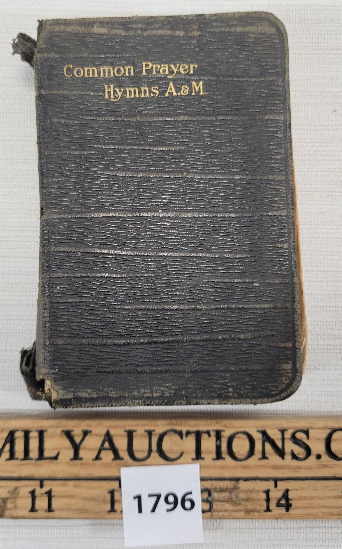 NOTE: "COMMON PRAYER HYMNS A.& M." SHOWS WEAR - SPINE IS DETACHING - GILDED PAGES - INSCRIBED