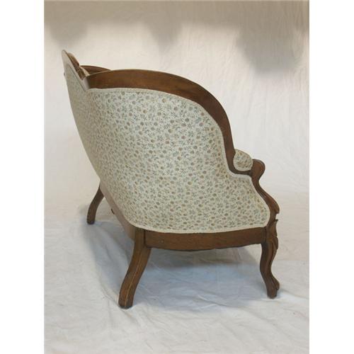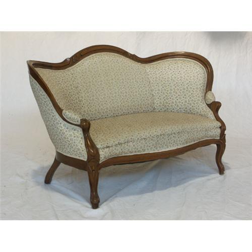 SETTEE: Circa 1870 Victorian Rococo walnut settee, carved and molded frame, cabriole legs.