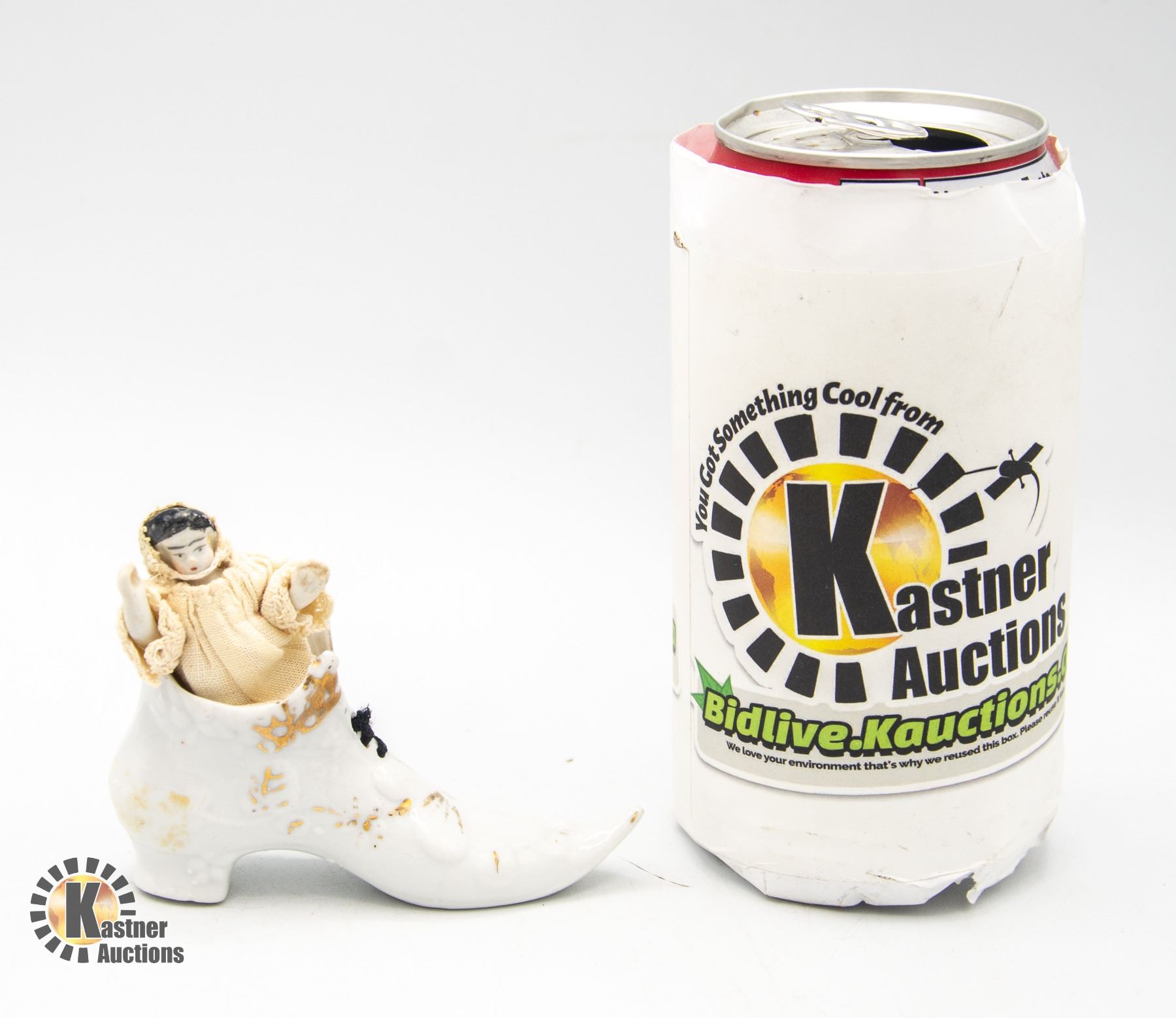 CIRCA 1895 PORCELAIN SHOE WITH DOLL SET