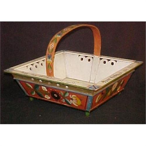 THIS COMES FROM A PRIVATE OWNER NEAR WESTBY WISCONSIN. LATE 1800'S TO EARLY 1900 NORWEGIAN ROSEMALED SENDING BASKET. CONDITION IS EXCELLENT WITH MINOR AGE WEAR, NOTHING TO WORRY ABOUT HERE. EXCELLENT. NO CHIPS, CRACKS OR REPAIRS. GUARANTEED OLD AND ORIGINAL.