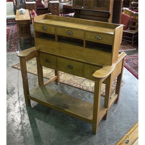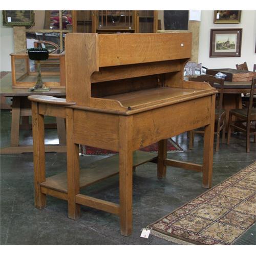 AUCTION PODIUM: Circa 1920-30 golden tiger oak auction podium, stand with multiple drawers. 55''h x 38''d x 58''w