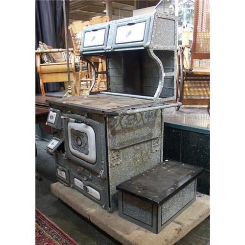 WOOD RANGE: Circa 1930 Home Comfort wood range, cast iron with porcelain and chrome.