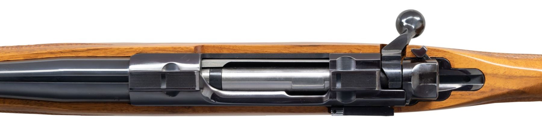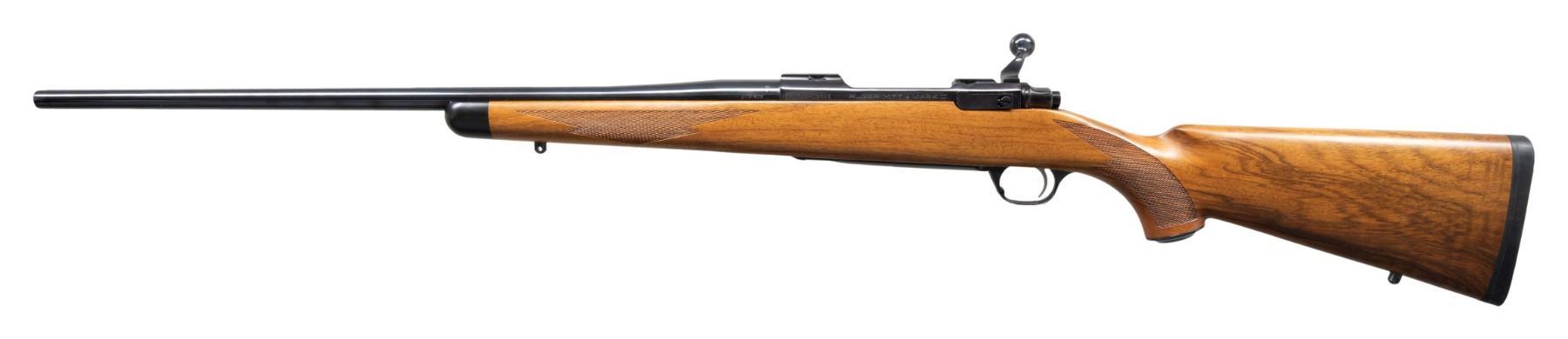 BOLT ACTION RIFLE. Cal. 270 Win. S# 792-13595. Bbl. 22" without provision for sights. Mfg. 2006 as M77RCW MKII with Model number 17944. Highly figured, checkered Circassian walnut stock having black forend tip, grip cap, sling studs and black rubber pad. Stainless bolt body with blued shroud; bolt is numbered "60779" & does not match rifle S#. Very scarce configuration in classic American chambering. UNATTACHED ACCESSORIES: original box with packaging. CONDITION: all aspects near excellent appearing unfired. (25-974/NW). MODERN. $400-600.