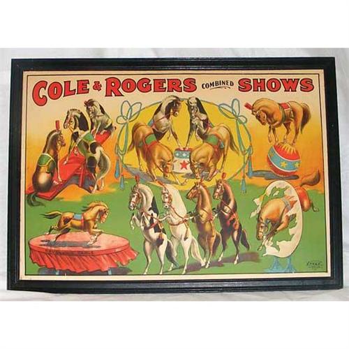 Cole & Rogers Circus poster framed. 43.5'' x 28.75''